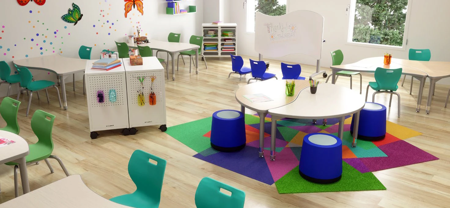 Take a virtual tour of seven K-12 learning environments set up to meet the needs of today’s evolving classroom. Each space features 3 flexible layouts of the same furniture so that you can visualize one space in a variety of ways.